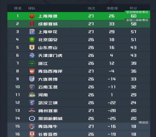 随着本月的国家队比赛日结束,各国联赛再次开启新的联赛赛程;中超也在北京时间10月17日晚进行了第27轮的对决;志在争冠的海港,蓉城和申花率先出战。结果三队都是全取三分,积分榜上海港继续领跑,国安则已经掉队。