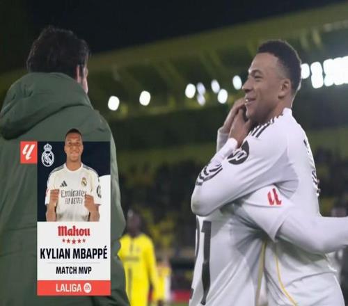 官方消息,姆巴佩当选比利亚雷亚尔对阵皇家马德里一役全场最佳。